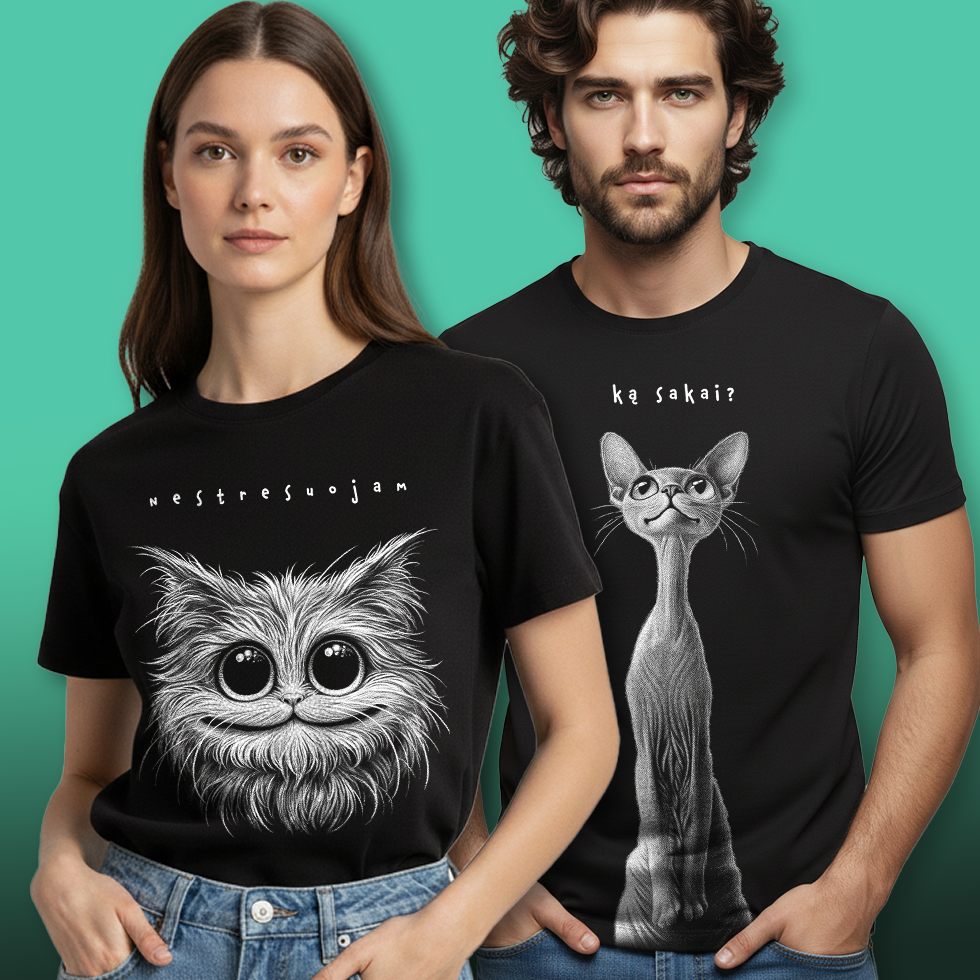 Juodas printas ant juodo rūbo. Unikali technologija.