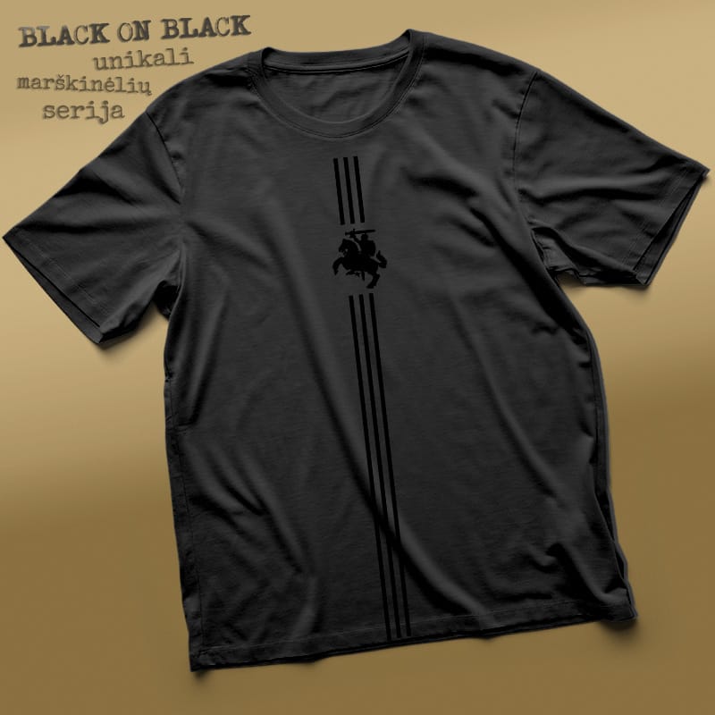 Išskirtinė kolekcija su unikalia juoda spauda ant juodos tekstilės.