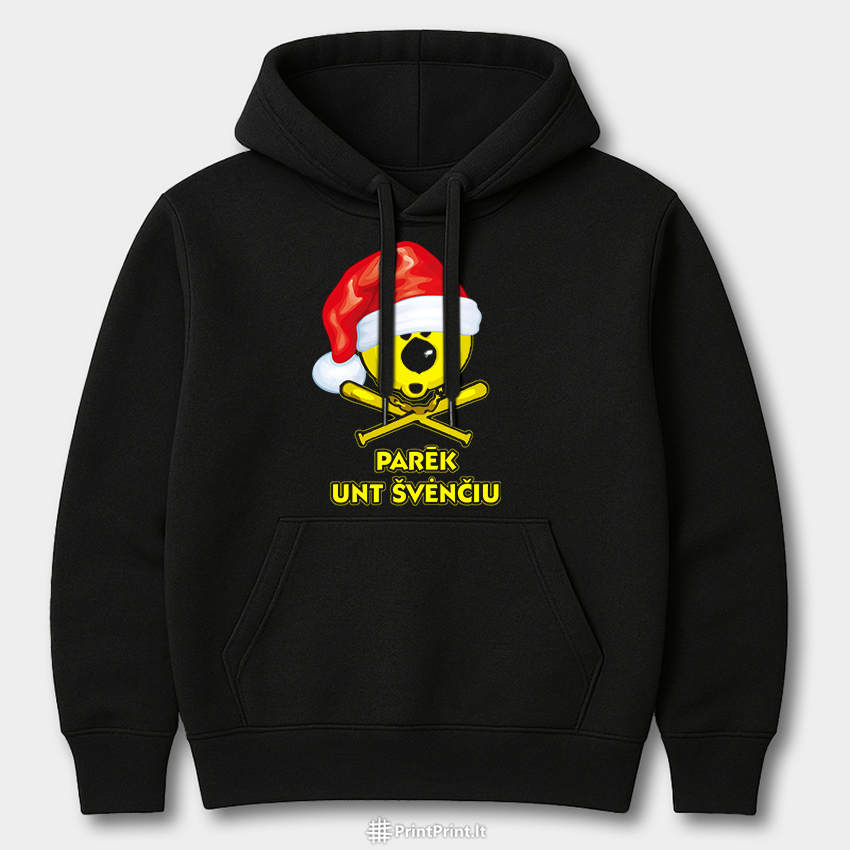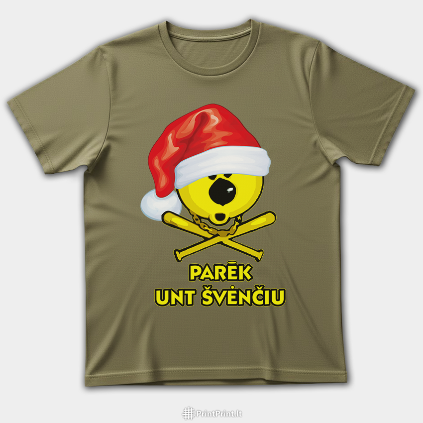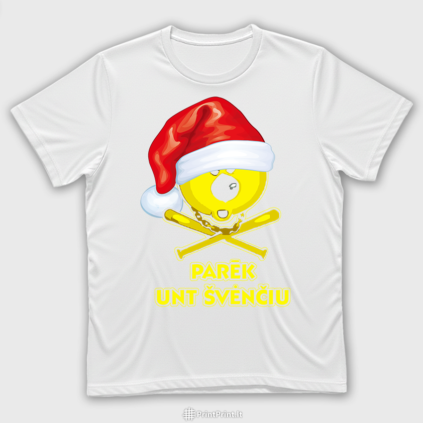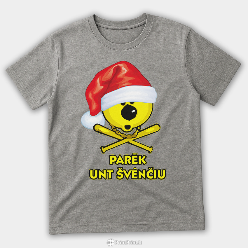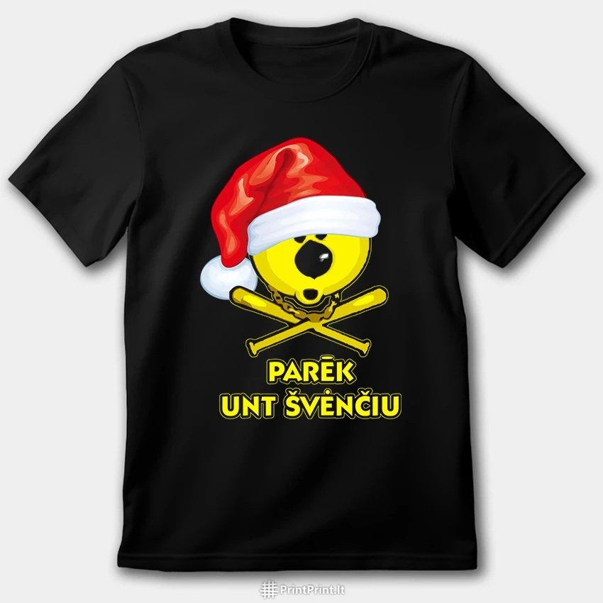 Tyliai sėdėti per šventes? Ne žemaičiams. „Parēk unt švenčiu“ – žemaitiškas kalėdinis dizainas su kaukolės emotikonu ir Kalėdų Senio kepure, skirtas tiems, kurie nori švęsti garsiai, drąsiai ir sava kalba.