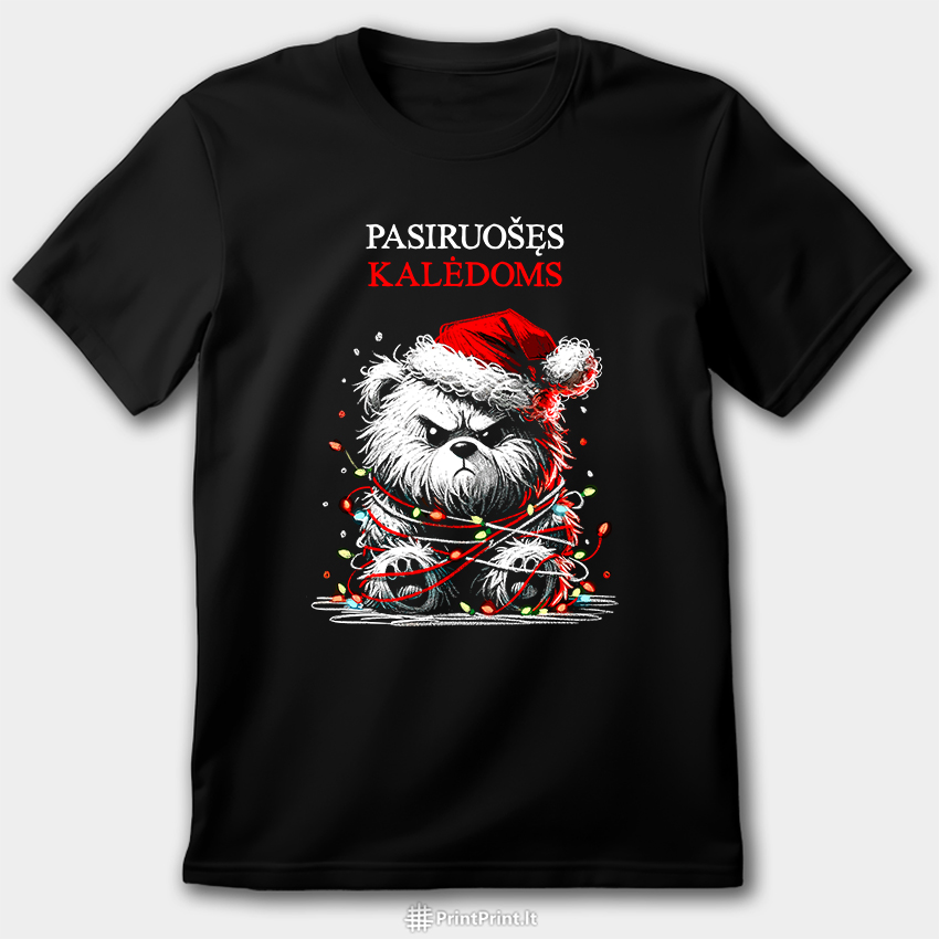 Puiki dovana žmogui, kuris kasmet tvarko žaisliukus, girliandas ir visą šventinį chaosą. Su šiuo dizainu galima juoktis iš savęs ir šventinio streso, o meškiukas ant rūbo pasirūpins nuotaika.