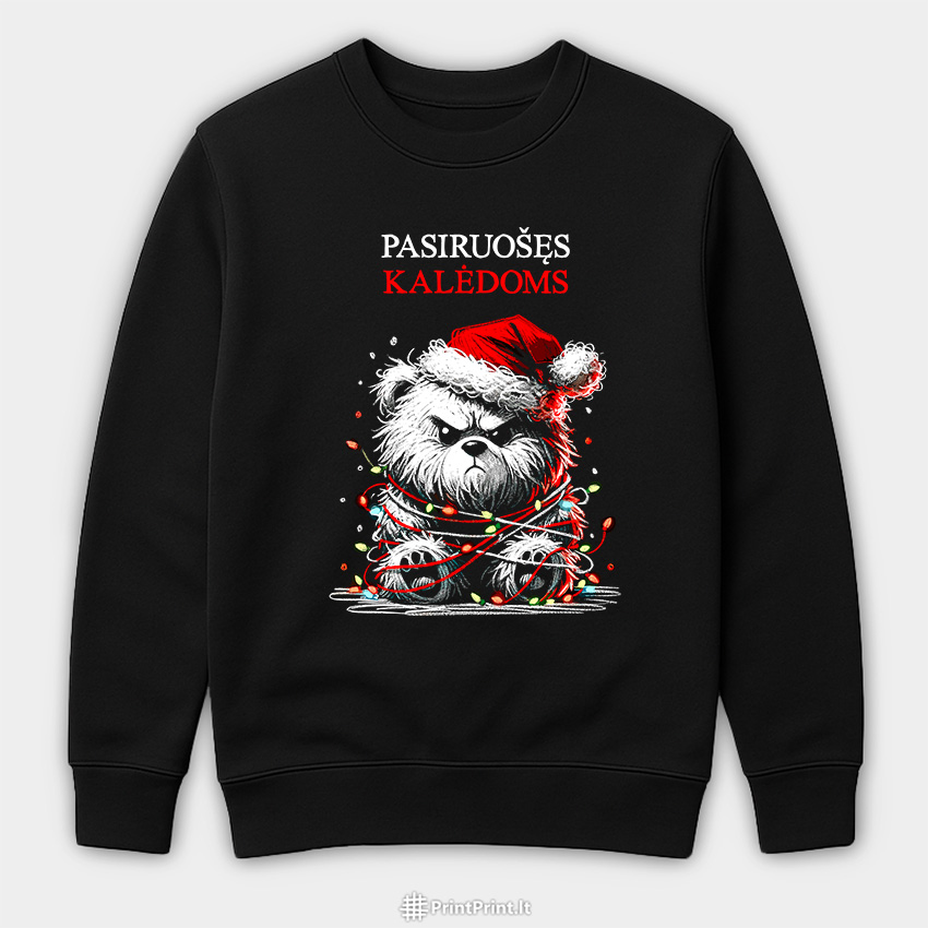Atpažįsti save prieš šventes? „Pasiruošęs Kalėdoms“ – tai piktoku snukučiu žiūrintis, kalėdinėmis girliandomis apsivijęs meškiukas, kuris labai gerai žino, kiek nervų kainuoja pasiruošimas.